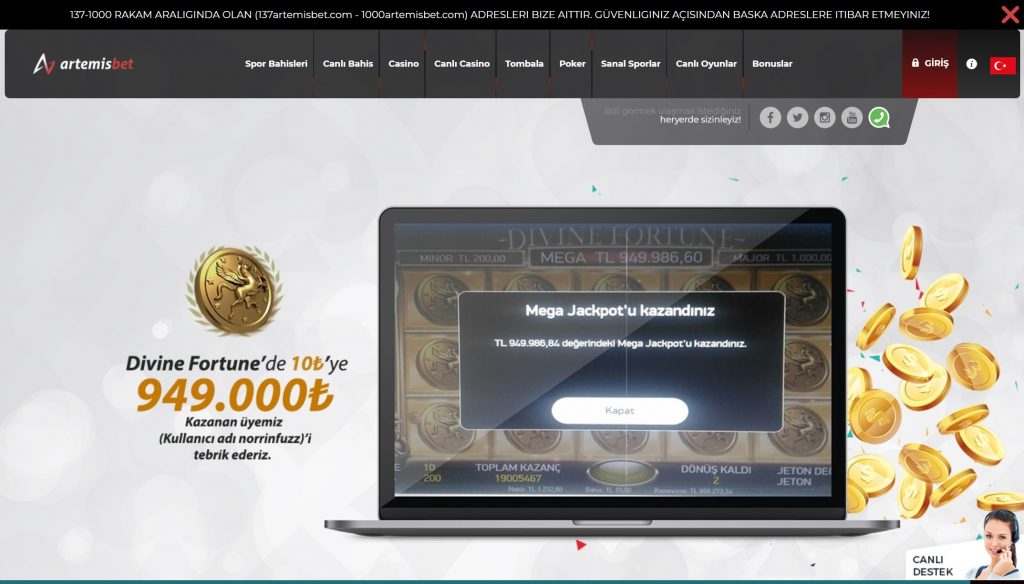 Bazı siteler futbol yada basketbol maçları oranlarını yüksek gösterebiliyor ve kupon yaptıktan sonra maça birazcık kalmış olduğunda oranlar düştüğünde sizin daha önceden satın almış olduğunuz oranı da değiştirebiliyor ve bu kullanıcılar için hiç hoş bir konum değil. sadece Artemisbet sitesinde futbol veya basketbol kuponu hazırladığınızda aynı vakit da canlı bahis oynadığınızda da oranlar sizin almış olduğunuz değer üzerinden kabul edilir ve sonrasında azalsa dahi sizin satın almış olduğunuz kupona tesir etmez. bu nedenle kullanıcılar bahis yaparken de Artemisbet sitesine ayrıca güveniyorlar.
